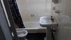 Baño completo y dormitorio amplio con placar